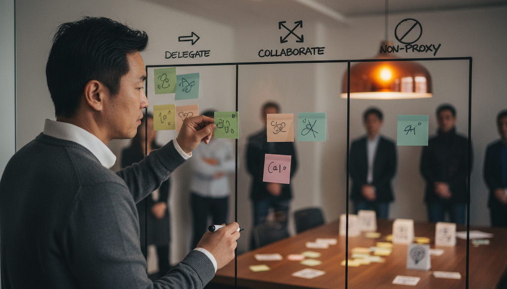 - 不可代理(人自己上): 涉及信任、倫理、策略決策。例:績效面談、升遷